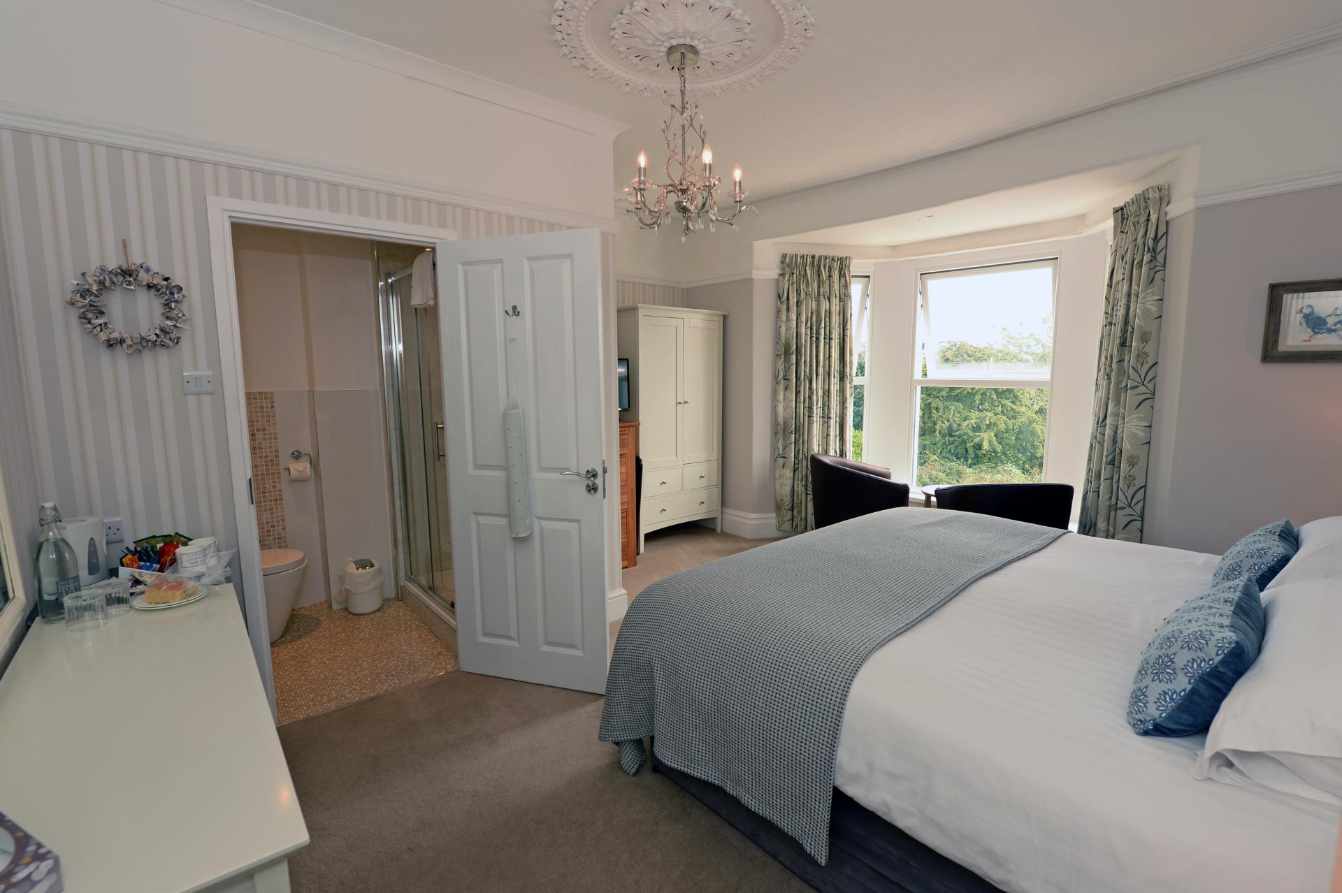 There are six double rooms, some with views across the bay, towards the Gower. They each have an en-suite shower/bathroom, tea and coffee making facilities, Freeview T.V. and DAB radio. Free Wi-Fi is also available. The larger sea view rooms also have a fridge.