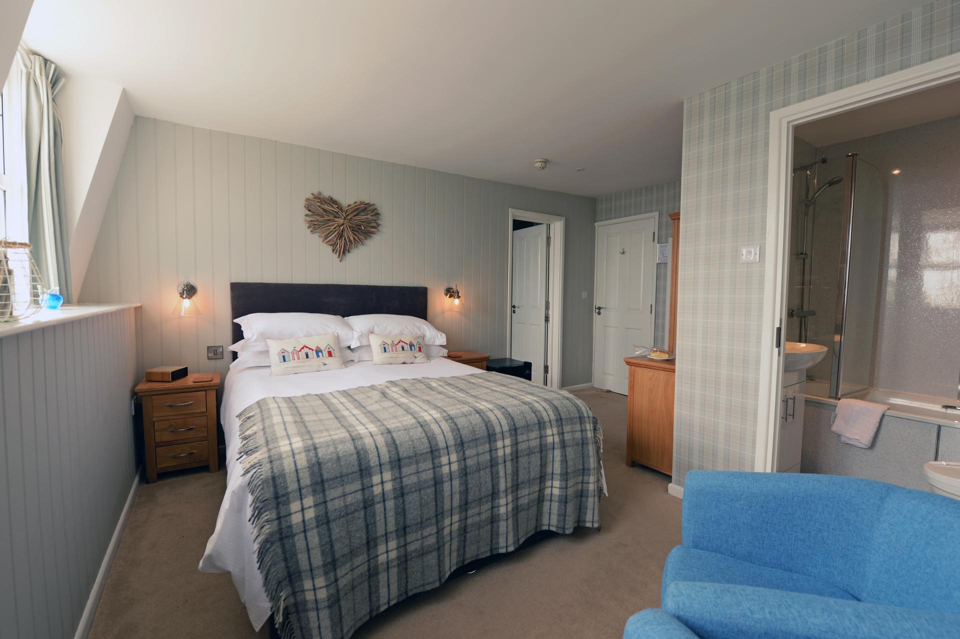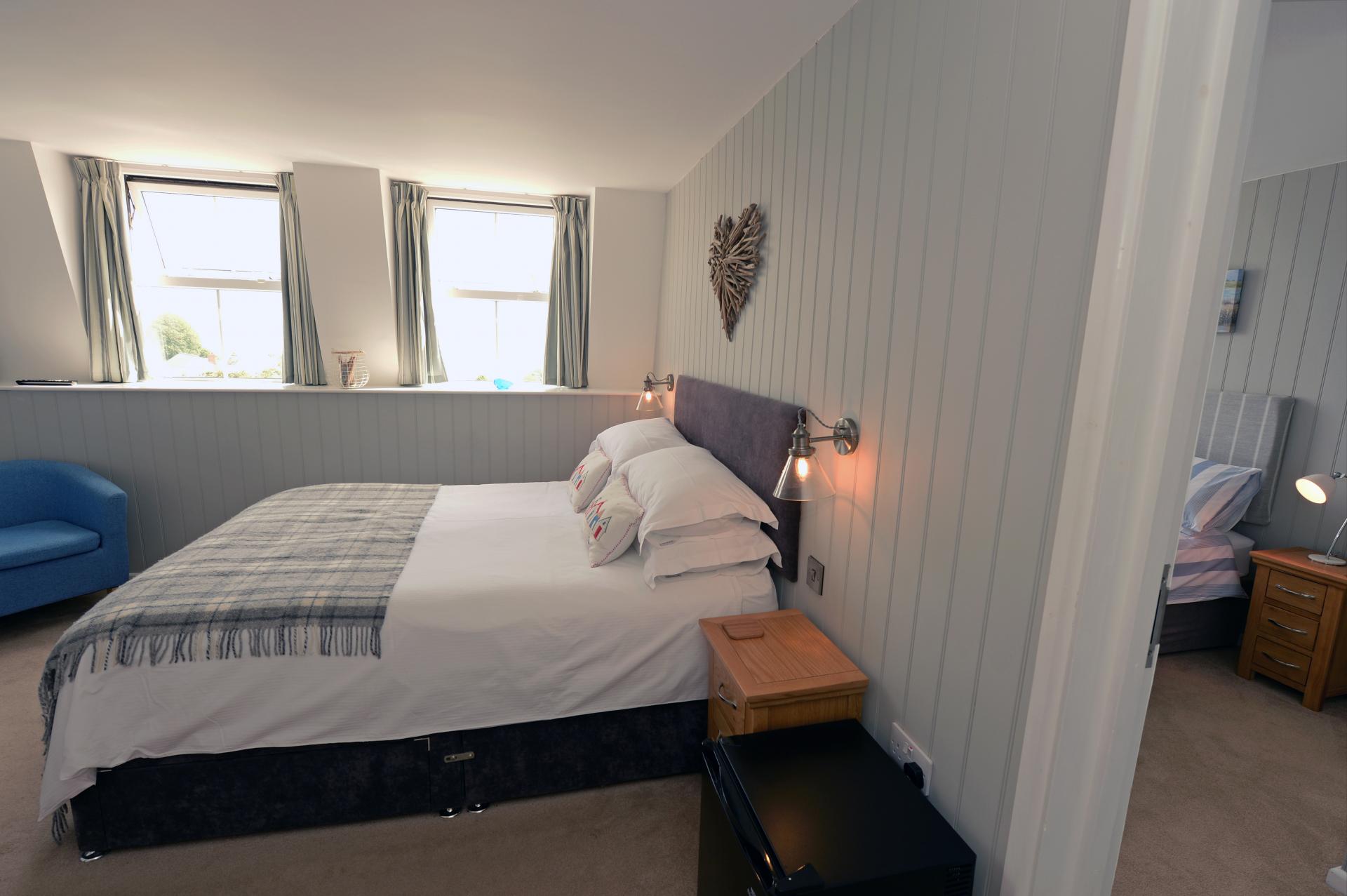 This double sea view room has a connecting door to a small sea view room with a double bed and its own en suite shower room,. Together these two rooms are perfect for two or three people holidaying together but wanting their own space.
